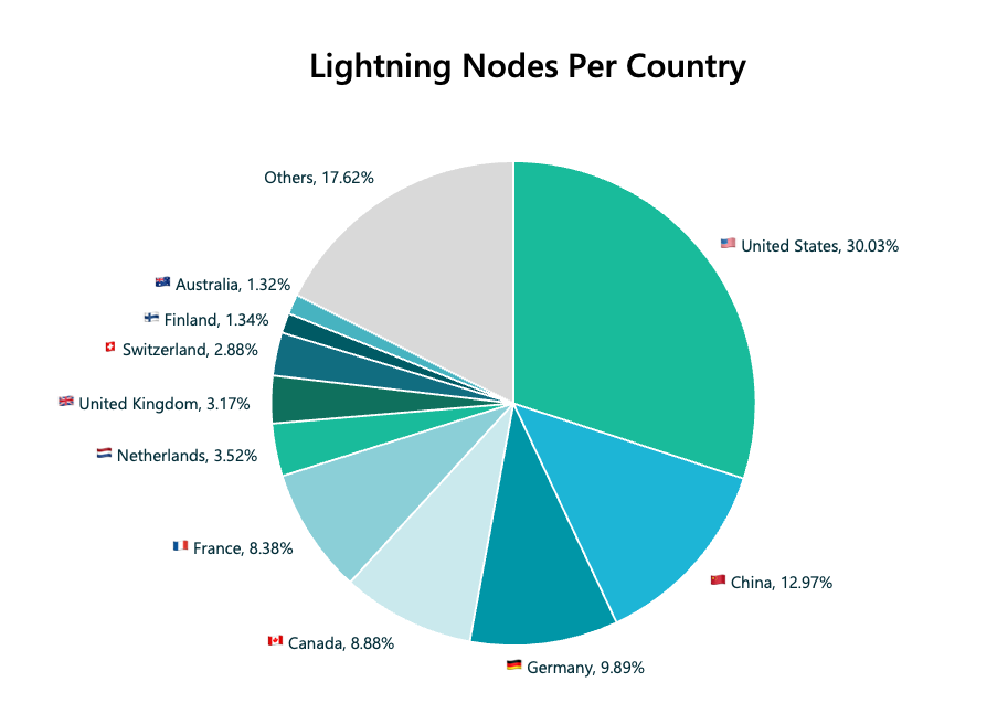 And Lightning’s global footprint is growing fast. As of November 2025, the United States leads with over 1,200 public Lightning nodes, followed by China, Germany, and Canada, reflecting a rising wave of infrastructure adoption.